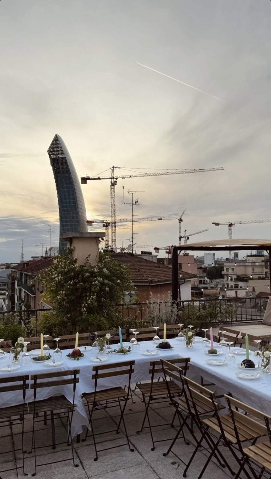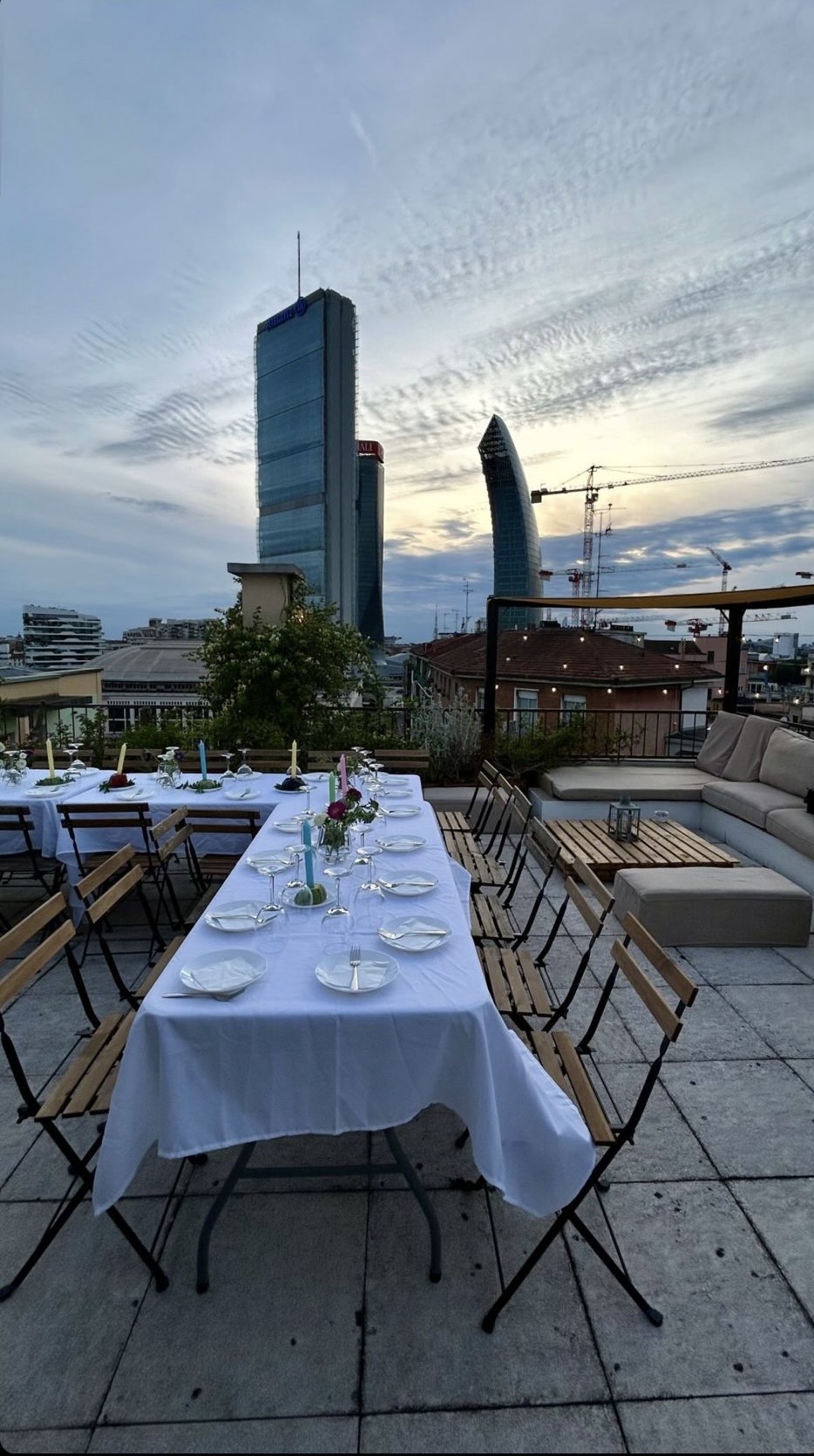 Luci soffuse,lanterne e candele creano un'atmosfera incantata, mentre la vista spettacolare su CityLife aggiunge un tocco di magia moderna.