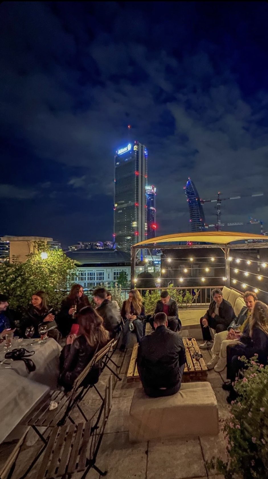 L'atmosfera è vivace ma sofisticata, con momenti di divertimento e altri di conversazione rilassata, il tutto incorniciato dalla vista panoramica sulla città.
